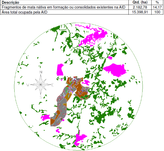 Nas propriedades rurais, pela legislação vigente, deveriam ocorrer ocupações florestais de pelo menos 20% da área total como Reserva Legal e mais 10% em média de Áreas de Preservação Permanente. Na AID (área indiretamente afetada) do empreendimento ENTREVERDES existe uma deficiência de ocupação florestal nativa.