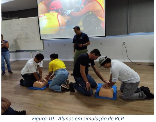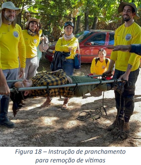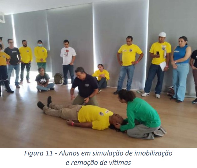 neurológico, traumas, quedas, fraturas, luxações, ferimentos, hemorragia, choque elétrico, queimaduras. - Aula Prática de Primeiros Socorros – APH: bandagem e controle de hemorragias, imobilização com talas, pranchamento e remoção de vítimas em áreas remotas/florestas, manobra de desengasgo em criança e adultos, RCP – reanimação cardiopulmonar em crianças e adultos, vedação para máscara de ventilação – AMBU, conteúdo básico da caixa de primeiros socorros, conteúdo básico da bolsa de resgate.