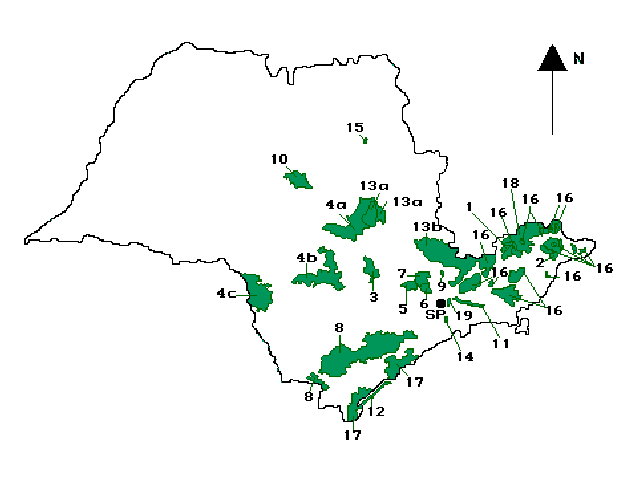 16 APAs estaduais, 3 federais e várias municipais. Em mais de 100 municípios, com extensão de cerca de 2,5 milhões de hectares.