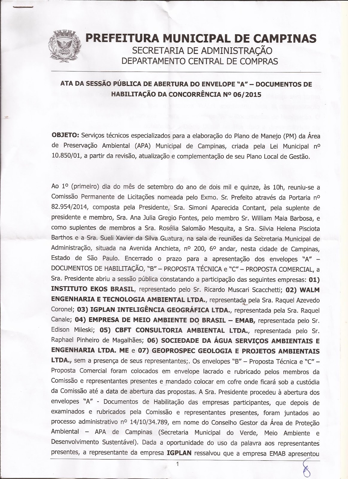 Foram 7 empresas que compareceram ao chamado do edital, apenas uma de Campinas. A maioria das empresas são de outros estados. O papel do CONGEAPA, nessa processo será acompanhar as etapas conclusivas do edital que irá contratar a empresa que prestará o serviço |